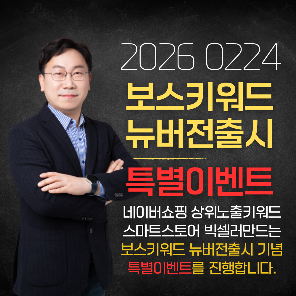 | 본문 | 안녕하세요? 국민사장님 여러분 2026년 2월 24일 !!! 드디어 보스키워드 뉴버전 리뉴얼되었습니다. 네이버쇼핑 상위노출에 도움되는 키워드 프로그램 스마트스토어 파워셀러와 빅셀러로 성장하는 도움되는 키워드 프로그램 판매 도매 제조 물류 사장을 만드는 보스메이커 이제봉 대표가 수천명의 파워셀러를 양성하면서 만든 보스키워드 프로그램이 AI 기능을 탑재한 뉴버전으로 리뉴얼되었습니다. "보스키워드 뉴버전출시" 기념으로 특별이벤트를 진행하고자 합니다. 매월 결제하는 일반회원과 1년 결제하는 연간회원으로 나눠 진행할 예정입니다. 궁금하신 분들은 010 3390 7474 이제봉 대표에게 문자로 문의해주세요. 순차적으로 답변을 드릴께요. AI 키워드 내상품을 만들 수 있는 보스키워드 뉴버전으로 1분안에 네이버쇼핑 상위노출되는 키워드 내상품을 만들어봅시다.